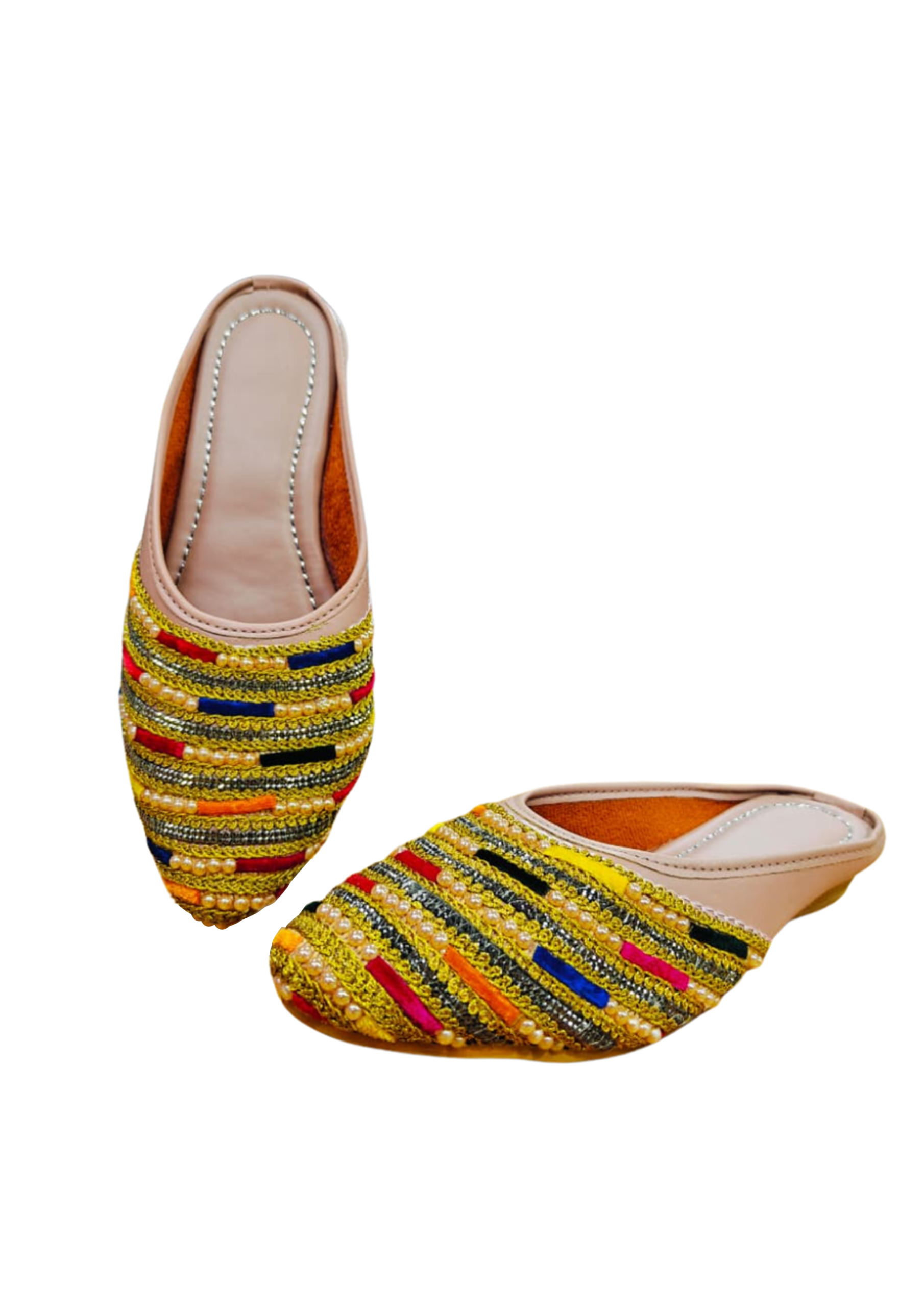 Add a touch of elegance to your ethnic wardrobe with these pink hand-embroidered women’s juttis. Crafted with intricate detailing and soft cushioning, these juttis offer all-day comfort while enhancing festive, wedding, and traditional looks.